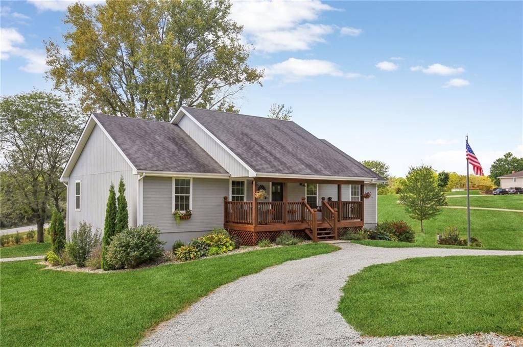 Welcome Home! Walk up to the charming front porch to enjoy the beautiful landscaping. The front door leads to the main living area which includes a nice sized living room and kitchen/dining room combo. The kitchen has plenty of cabinet space, stainless steel appliances, and a mudroom/laundry space right off the kitchen. Primary Bedroom located on the main floor with a large bathroom and two closets. Two additional bedrooms located on the main floor and a hall bath. Finished basement downstairs with plenty of potential for additional family room, playroom, or workout space¦ with a half bath and additional storage. Basement leads to the two car garage and covered patio space perfect for entertaining guests. Great opportunity for small town living on a quiet road just minutes from town.