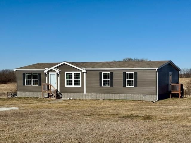 Beautiful Ranch Home on 5 Secluded AcresThis spacious ranch sits on 5 peaceful acres surrounded by farmland, offering privacy, views, and room to breathe. Step inside to an open-concept layout that blends the extra-large living room, dining area, and eat-in kitchen into one bright, welcoming space. Oversized windows throughout the home fill every room with natural light.The kitchen is a standout feature, complete with all appliances?refrigerator, stove, microwave, and dishwasher?plus pantry and an extra-long island perfect for cooking, gathering, or entertaining.The primary suite is a true retreat with a generous bedroom, walk-in closet, and a beautiful private bath featuring double sinks, a walk-in shower, and a large soaker tub. Bedrooms two and three share a full hall bath, and the laundry room is conveniently located at the end of the hallway.Step outside to the massive back deck?an incredible space for relaxing, hosting, or simply taking in the wide-open views. The property includes the storage container and grain bins that stay with the home, adding valuable utility and flexibility.If youre looking for peaceful country living with modern comfort and an amazing outdoor setting, this property delivers it all.
