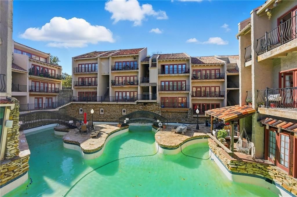 Welcome to this stunning top-floor unit in the highly sought-after Bella Condominiums. This elegant 2-bedroom, 2-bathroom residence offers a perfect blend of modern luxury and convenience, located just steps away from the vibrant plazas restaurants, shops, and entertainment. As you enter, youll be captivated by the sun-drenched living and dining areas, featuring vaulted ceilings with exposed wood beams and charming French doors. An open kitchen awaits, boasting a breakfast bar, custom cabinetry, and sleek granite countertops, complemented by stainless steel appliances?including a fridge that stays. Freshly adorned with upgraded Benjamin Moore paint, the home showcases a meticulously updated main bathroom with an oversized shower and stylish new vanities and tile. Each generously sized bedroom is equipped with custom closets, while a versatile loft area offers endless possibilities as a home office, guest suite, or art studio. Enjoy the Bella Condominiums exclusive amenities, including a stunning pool, beautifully landscaped common areas, a 24/7 workout center, and more. Cable and Google Fiber are available. Dont miss this must-see property.